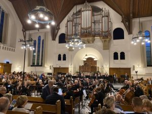 Gevarieerd concert zaterdagavond 13 septemberj.l., het Veenkoloniaal Symfonie Orkest (VKSO) samen met Jochem Schuurman (organist van de Martinikerk te Franeker) een uniek concert gegeven in de Grote Kerk van Wildervank. Sfeer foto in de Grote Kerk Wildervank. (Foto W. de Olde)